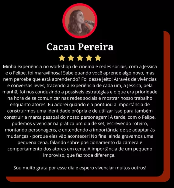Na minha comunidade, você terá acesso ao passo a passo comprovado para conquistar seus primeiros trabalhos no audiovisual, construir confiança diante das câmeras e, finalmente, se destacar no mercado